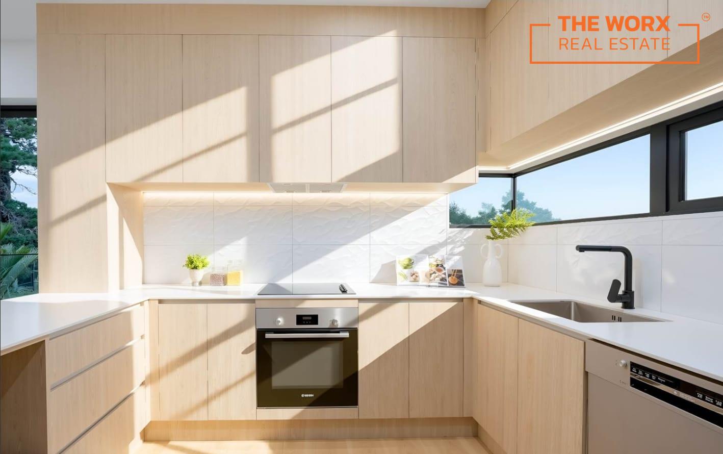 • Designer kitchens with stone benchtops & premium appliances